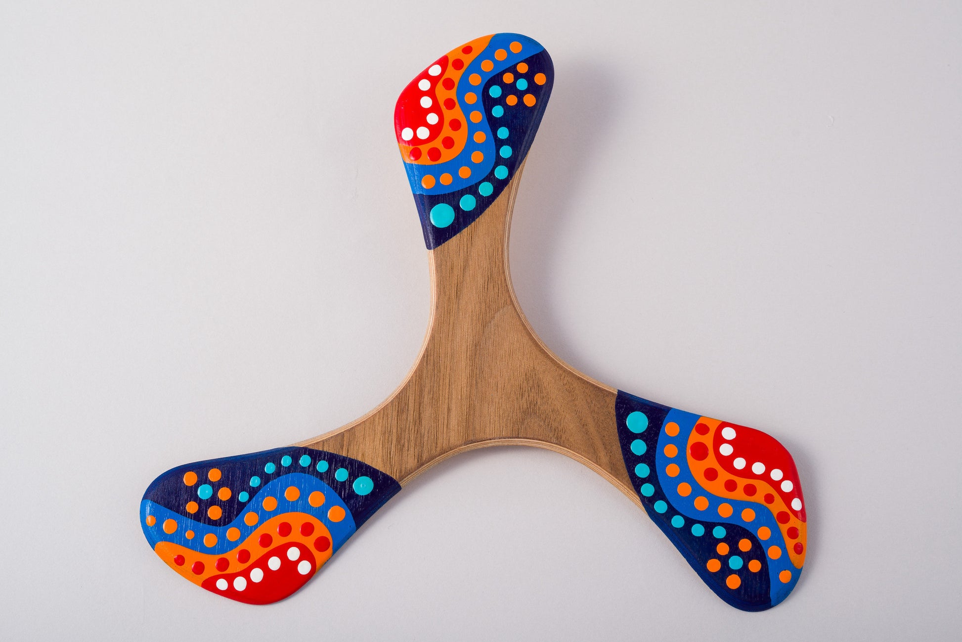 Le Wankura Boomerang est un boomerang vraiment unique. Il vole de manière optimale par vent moyennement fort et atteint une distance de vol de 25 à 30 mètres. A la fin de sa trajectoire de vol, il atteint une très belle phase de vol stationnaire et est très facile à attraper dans cette phase.