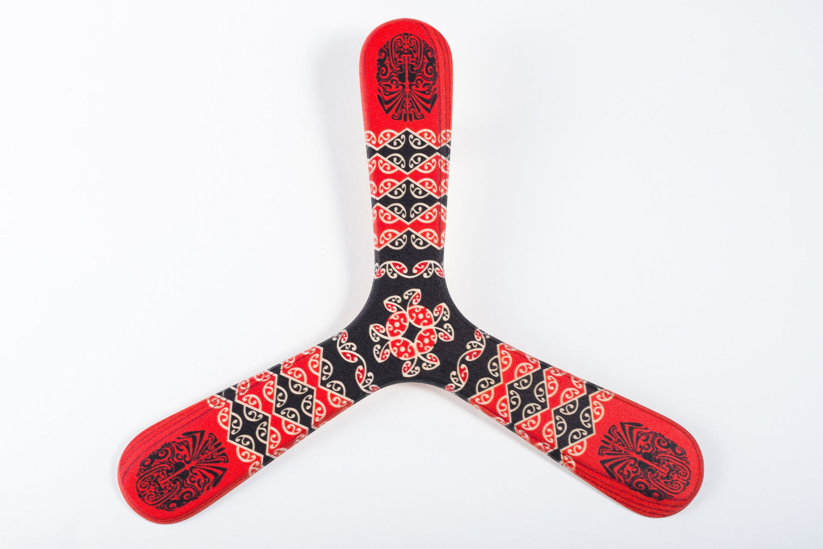 Dieser Maori Bumerang ist ein ausgezeichneter Kinderbumerang für Anfänger. Er hat seinen Namen aufgrund der aufgedruckten Maori-Symbole erhalten. Der Maori Bumerang erfordert keinen starken Wurfarm, ist bei der Rückkehr leicht zu fangen und fliegt am besten bei leichtem Wind. Egal ob als Geschenk oder Trainingsbumerang: Der Maori ist der richtige Bumerang.