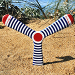This boomerang printed with the motifs of the Var brand La Marin'hyères is a collaboration between my studio and Caroline, who developed this t-shirt concept printed with the famous marinière standart. Thanks to this high-quality plywood, the boomerang is light and easy to throw and catch.