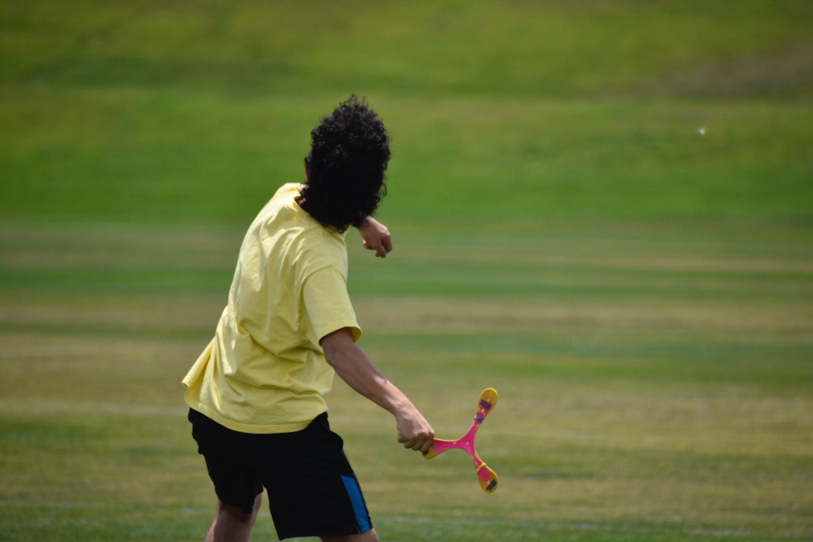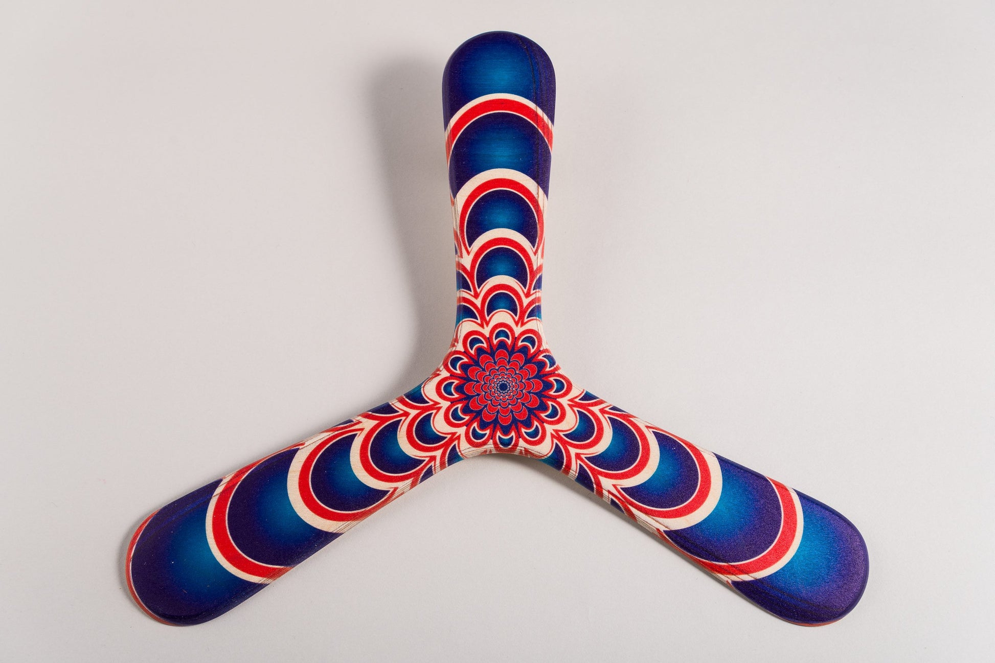 Con sus bonitas curvas azules y rojas, este bumerán es perfecto para toda la familia, gracias a su peso y pequeño tamaño, que facilitan su giro. Es el bumerán ideal para los principiantes porque se desliza fácilmente y es fácil de coger gracias a sus 3 alas y a su suave retorno. Ideal con vientos flojos. Excepcional y elegante: el bumerán en forma de arco no sólo es fácil de lanzar, sino que además tiene un estampado muy actual.