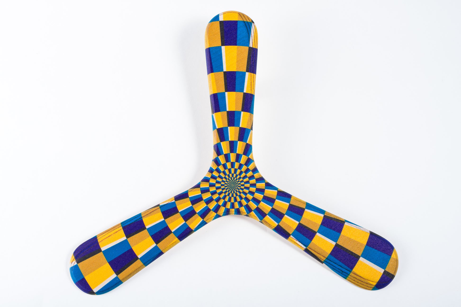 Scoprite il nostro moderno boomerang, un oggetto accattivante che unisce eleganza e funzionalità. Rifinito in blu e oro con un motivo a quadri, è un accessorio unico e accattivante. Progettato per garantire prestazioni ottimali, questo boomerang è ideale per gli appassionati di outdoor e per i collezionisti di oggetti di design.