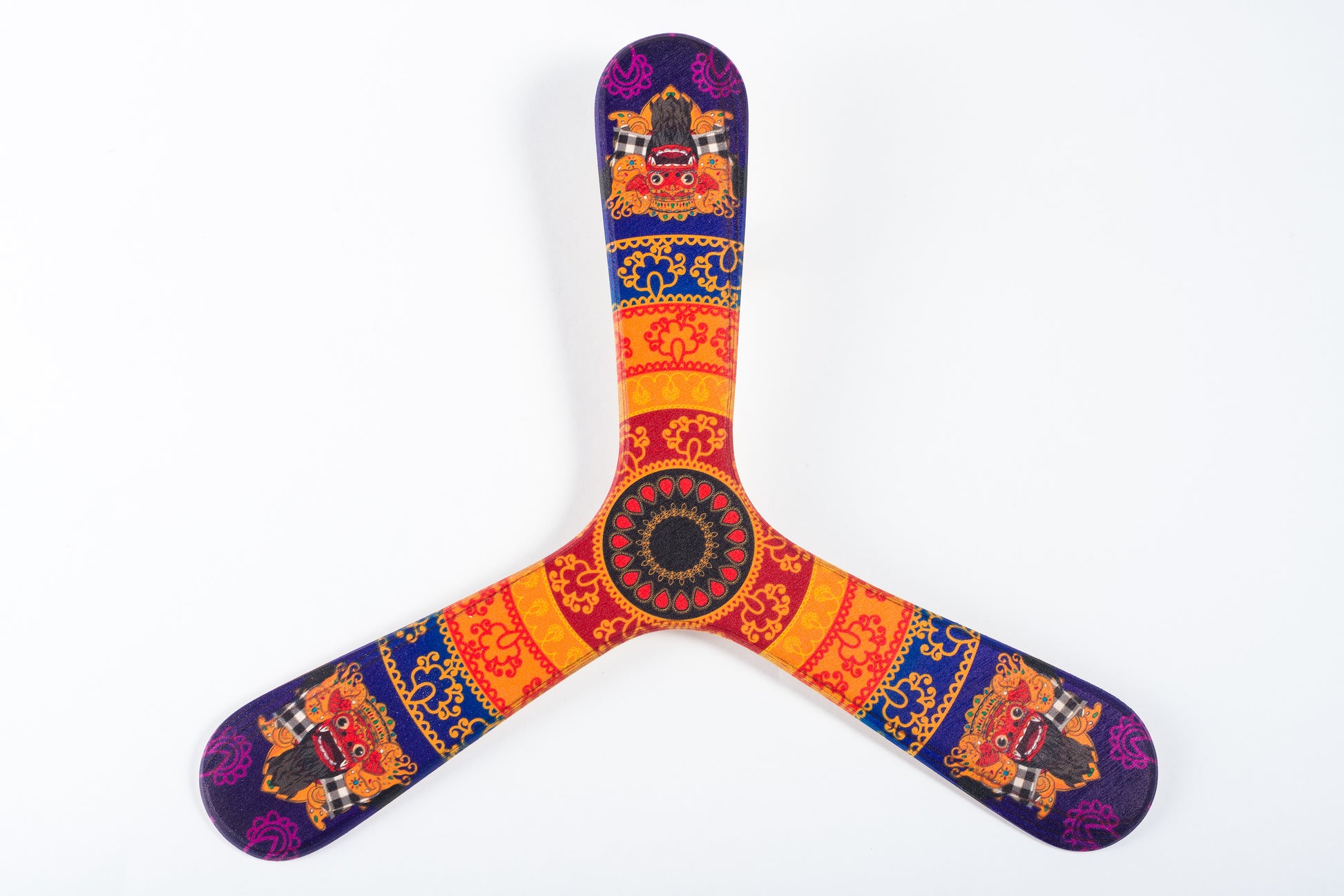 Indonezyjski bumerang jest szczególnie odpowiedni dla początkujących. Kultura indonezyjska była źródłem inspiracji dla tego eleganckiego nadruku i nadaje mu nazwę. Jest łatwy i bezpieczny do złapania. Dzięki ponadczasowemu wzornictwu może być również używany jako piękny przedmiot dekoracyjny.