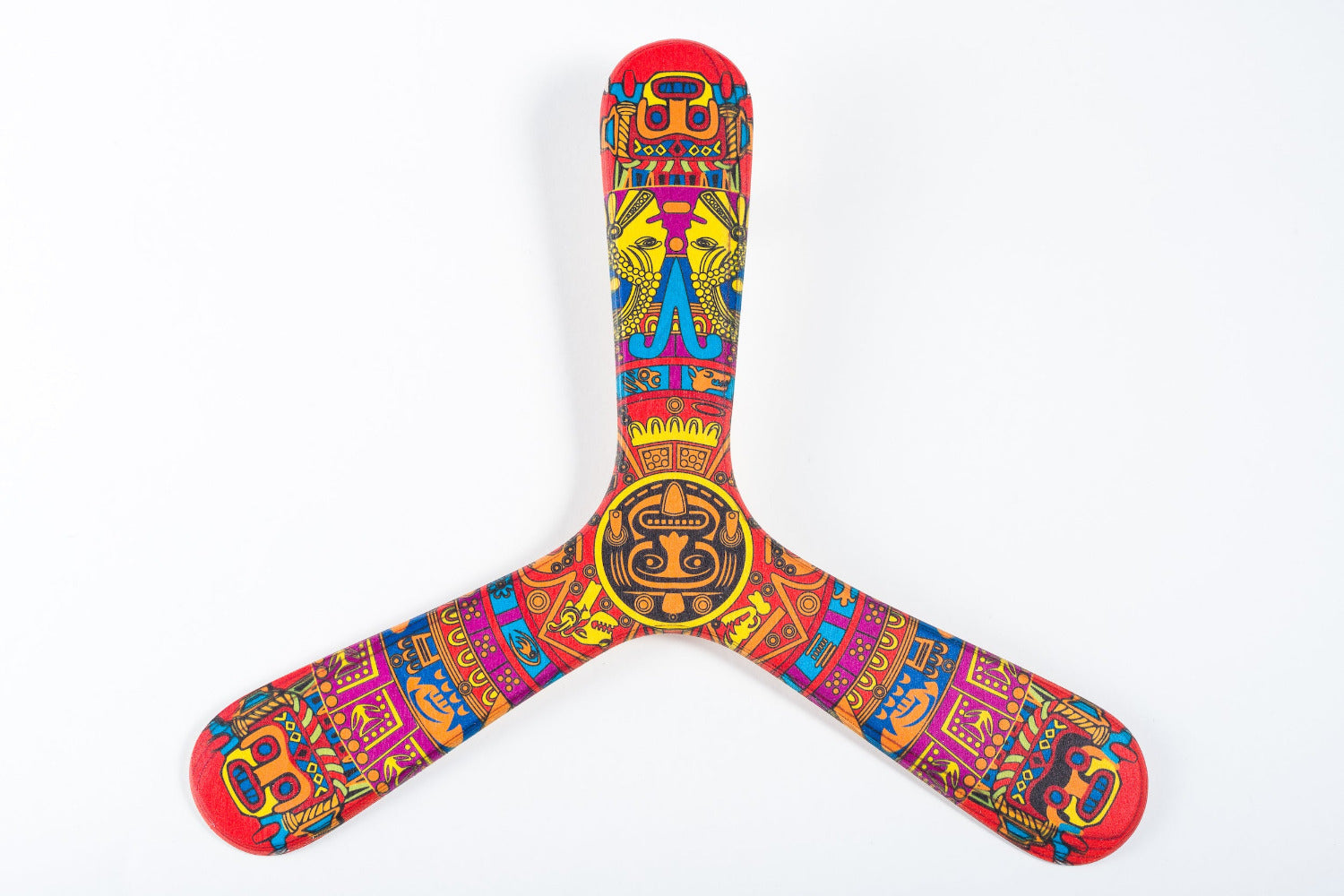 Idealny bumerang z trzema ostrzami dla początkujących, ponieważ łatwo szybuje i jest łatwy do złapania. Bardzo okrągły lot, idealny do rozgrzewki i dla tych, którzy nie mają dużo miejsca. Idealny dla najmłodszych dzięki swojej wadze i niewielkim rozmiarom, które ułatwiają obracanie. Wykonany z najlepszej sklejki lotniczej. Nadruk z motywami Majów.